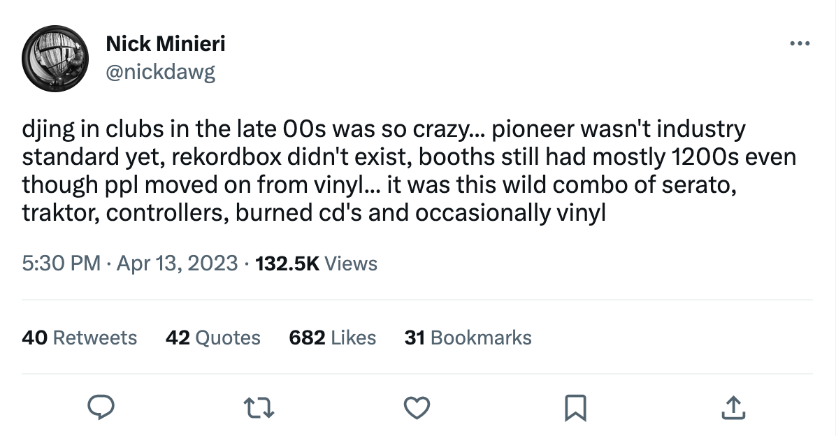 100 CD, 10 morceaux par CD, et l’espérance que le club possède des CDJ1000 et une flambant neuve DJM800. On est en 2007, et c’est tout le contenu du duffle bag Supreme vert acheté en début d’une tournée sur Fairfax. Il y’a une toute petite année, au printemps 2006, je mixais encore sur Traktor sur un PC Acer en ouverture de la première vraie tournée de Justice. Une fois, à Reims, mon ordi a même lancé une mise à jour à quelques minutes de la fin de mon passage, avec la voix qui va avec. C’est le moment qui m’a poussé à faire comme les copains : apprendre à mixer sur des CDJ. Mais à l’époque, en Amérique, le CD et les set-up Pioneer ne sont pas légion, surtout un mardi soir dans une cave de Washington DC. Mais (pas franchement moi), certains restaient à l’aise même sur du matériel préhistorique. Je me souviens tout particulièrement d’un incroyable DJ set de Brodinski pour une soirée Iheartcomix dans un rade de Los Angeles sur un système BST CD 356. Littéralement un truc de dj de mariage des 90’s.